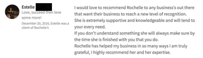 Rochelle Has Helped My Business in so Many Ways"